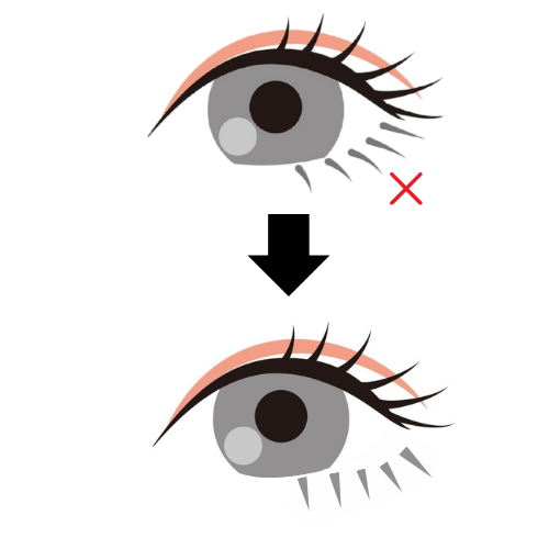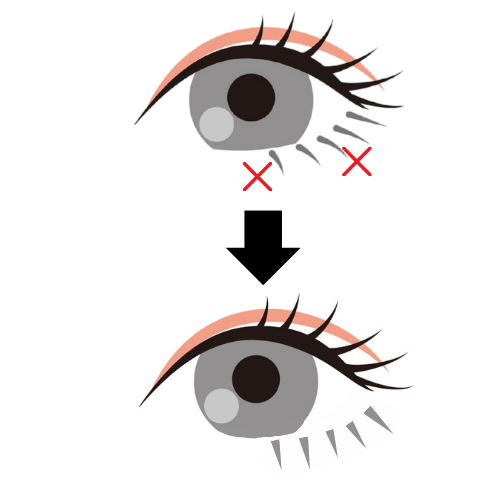 ③目尻のみ垂らして自然なたれ目になる目尻下1点