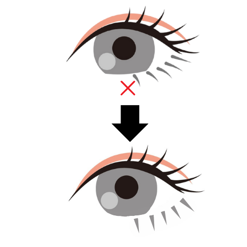 ②黒目をよりはっきりさせる黒目下1点