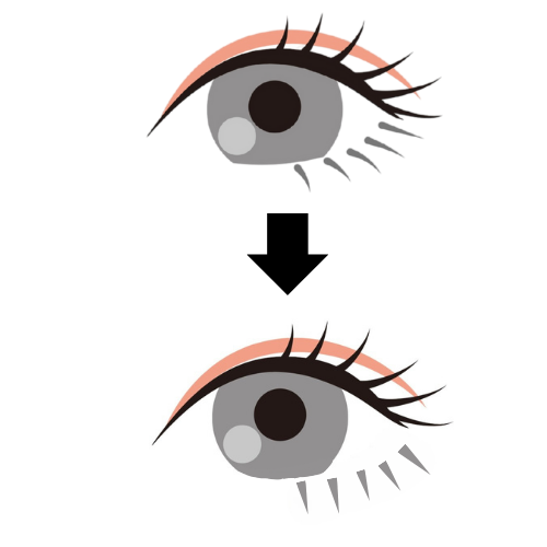 同時に目の面積も広がるため、目が大きくなった印象となります。