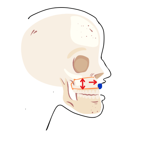 骨が原因である場合は上顎骨を切って骨格の形態を変える骨切りという施術が必要です。もう1つの選択肢として歯茎の粘膜や歯肉を切除する施術があります。骨切りに比べると改善効果は少なめですが、ダウンタイムはこちらの方が軽度です。