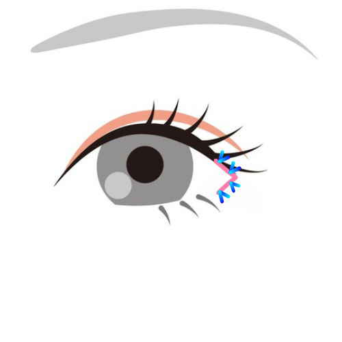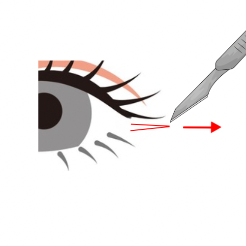 目尻の皮膚と粘膜を数mm切開し、縦方向に縫合します。