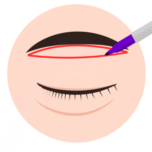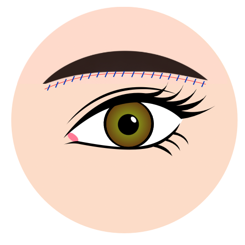 その点、眉下切開は皮膚の厚い東洋人に向いた方法です。眉毛内に切開線を作り、皮膚を切除して縫合します。