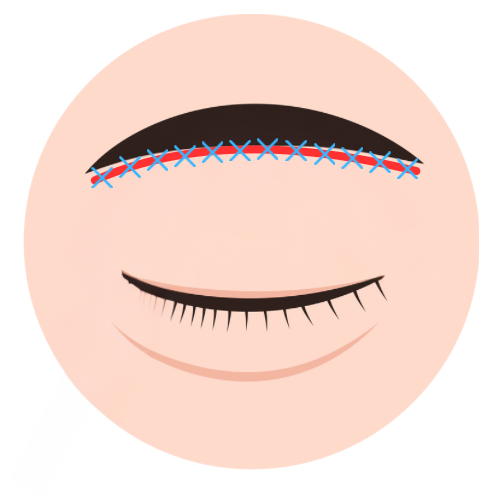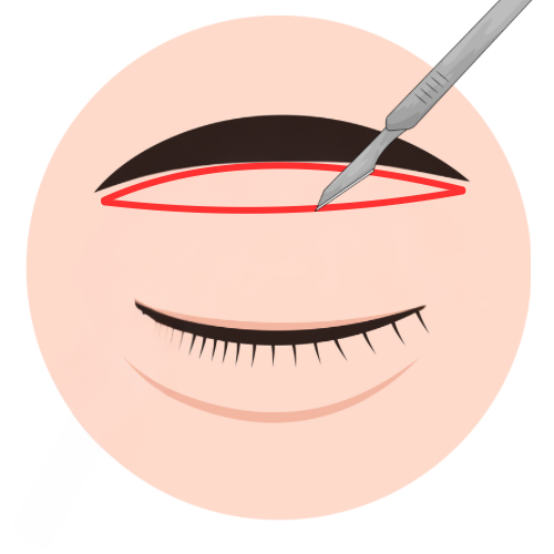上眼瞼皮膚切除術は、二重のラインに沿って切開し、上瞼の余った皮膚を切除する方法です。