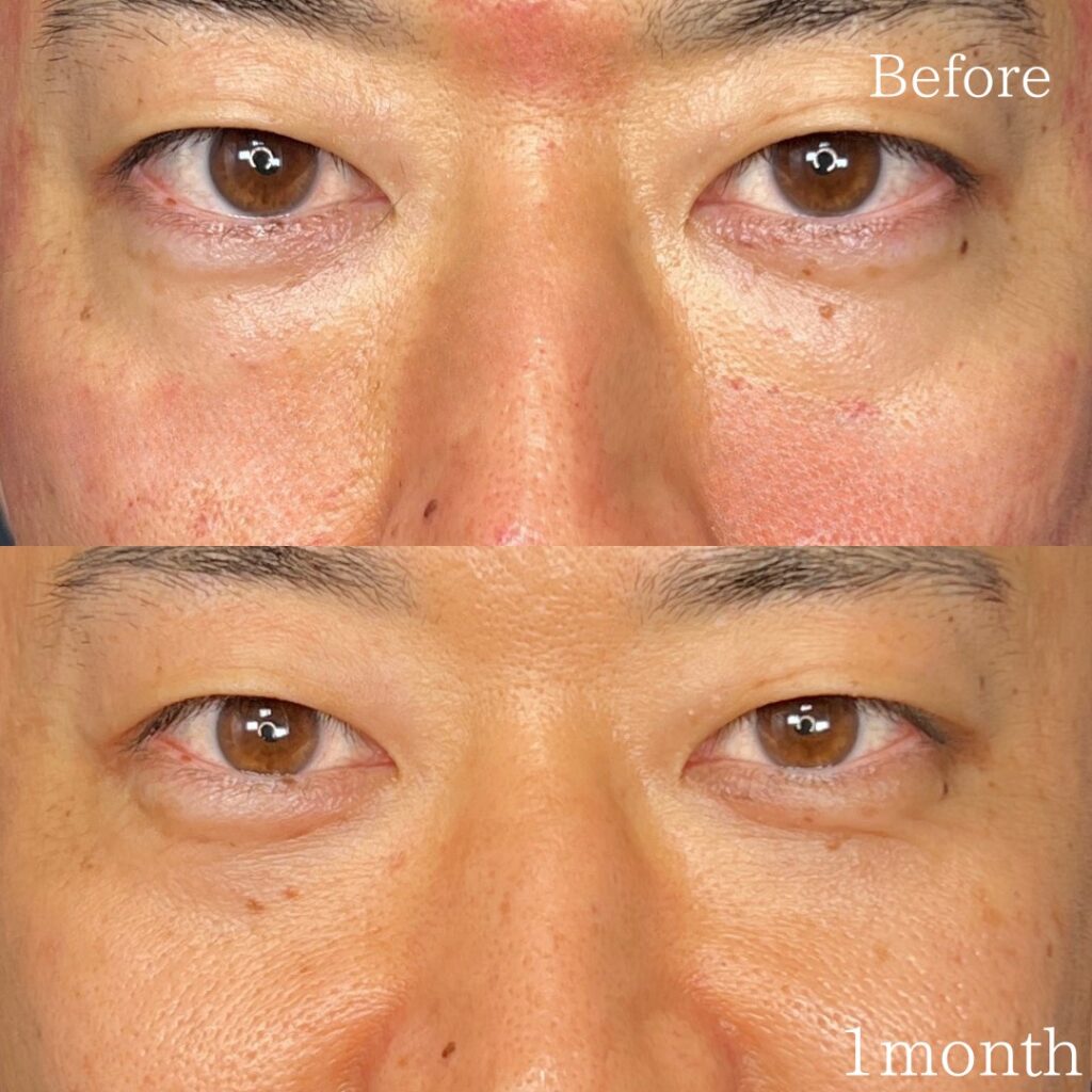 当院のくま・たるみ解消術で膨らみや凹みを治し、必要に応じてレーザーで色素沈着を改善します。