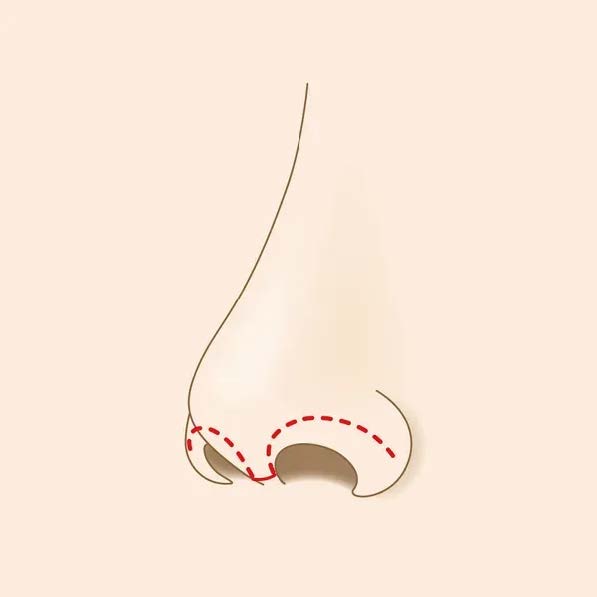 | 切開方法 | 鼻柱と両側の鼻の穴の内側を切開 | 鼻の穴の内側のみを切開 |