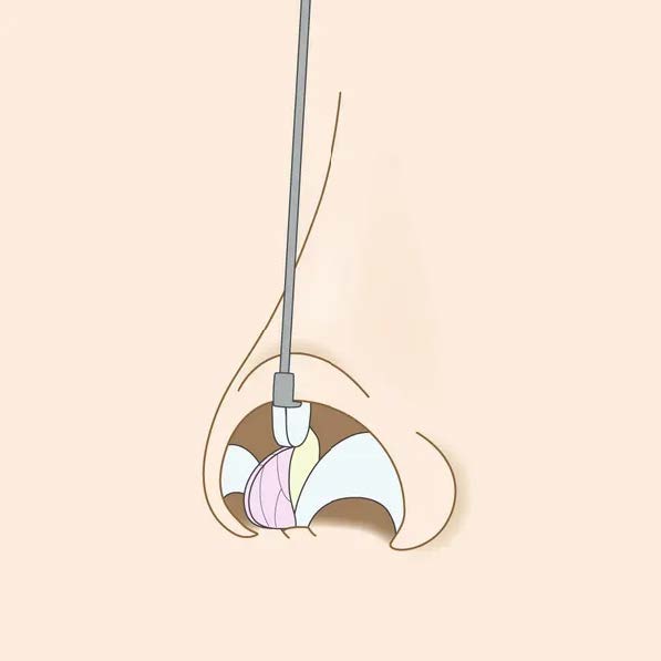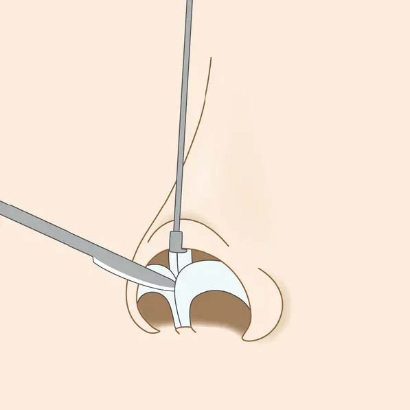 広げた部分から鼻中隔軟骨(鼻の中心にある仕切りの軟骨)を露出させます。