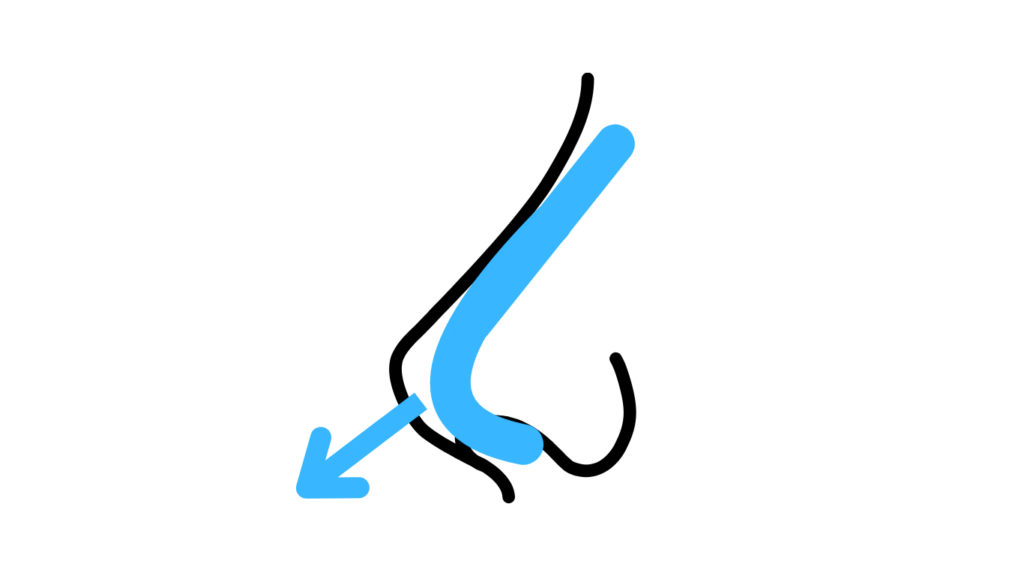 鼻先に高さを出し、前方かつ下方向へと形を整える施術です。