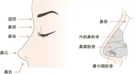 わし鼻は、鼻の中央部分にある「鼻骨」と「鼻中隔軟骨(鼻の中心に位置する軟骨)」の両方が前方に突出していることによって形成されます。