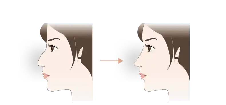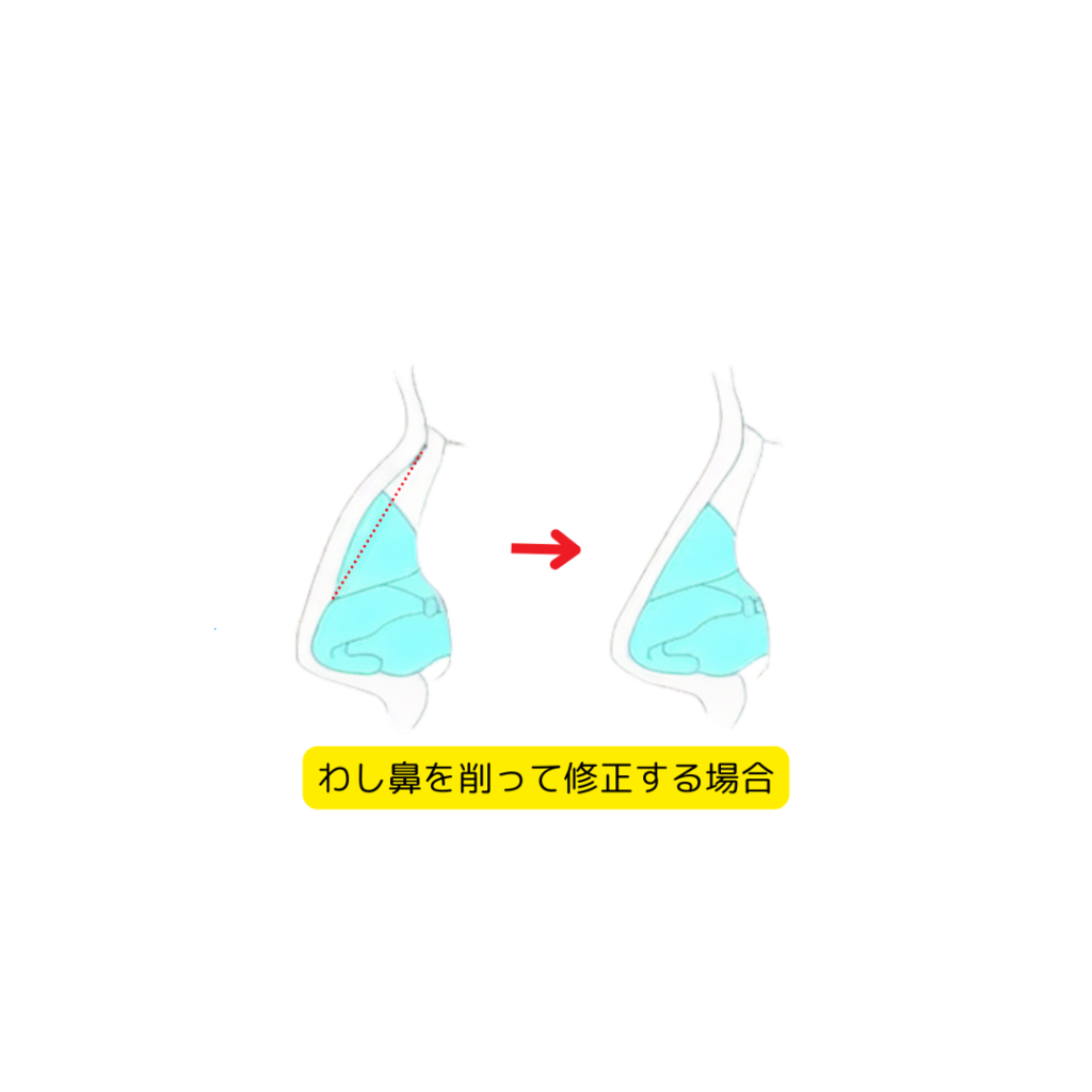 わし鼻修正術は、鼻筋の出っ張った部分の軟骨や骨を切除し、なだらかでまっすぐなラインに整える施術です。