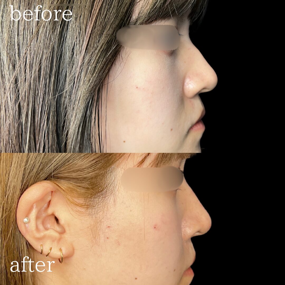 目立っていた鼻の凹凸を滑らかにすることで、お顔全体の印象が柔らかくなり、バランスの取れたスマートな横顔に仕上がります。