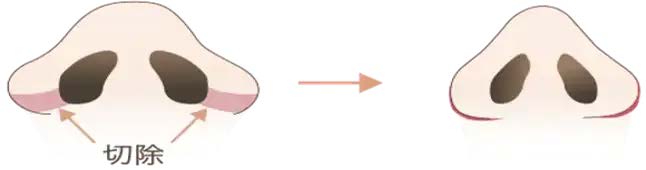 小鼻の外側の余分な皮膚と組織を切除し,縫合する方法です。